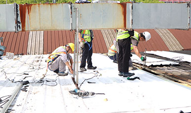 融合防水瓦的熱焊接工藝和彩鋼瓦機械固定連接工藝在連接方式、防水性能、連接強度、施工效率等方面存在區別,具體如下:連接方式熱焊接工藝:通過熱風槍等設備產生高溫熱風,將融合防水瓦的高分子面層(如 TPO、PVC 等)加熱至熔融狀態,使相鄰瓦片的接口處熔融并固化,形成與基材同質的無縫連接。機械固定連接工藝:利用自攻釘、螺栓、螺母等機械緊固件,將彩鋼瓦固定在屋面檁條或其他支撐結構上,通...