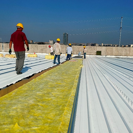 海美防水瓦以鋼板為基板,表面貼覆具有防水防腐功能的TPO/PVC卷材(熱塑性聚烯烴類防水卷材),是海美金屬推出的新一代防水防腐屋面建筑材料。海美防水瓦主要特點就是在各類環境下不易生銹不易漏水,使用熱風焊接進行相連,覆蓋全部裸露的縫隙,在使用過程中可以達到蓄水不滲透的效果,防水效果好,同時還有較好的抗風揭性能和耐老化性能,為鋼結構建筑屋面提供了長久的防護。
