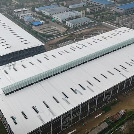 海美防水瓦以鋼板為基板,表面貼覆具有防水防腐功能的TPO/PVC卷材(熱塑性聚烯烴類防水卷材),是海美金屬推出的新一代防水防腐屋面建筑材料。海美防水瓦主要特點就是在各類環境下不易生銹不易漏水,使用熱風焊接進行相連,覆蓋全部裸露的縫隙,在使用過程中可以達到蓄水不滲透的效果,防水效果好,同時還有較好的抗風揭性能和耐老化性能,為鋼結構建筑屋面提供了長久的防護。