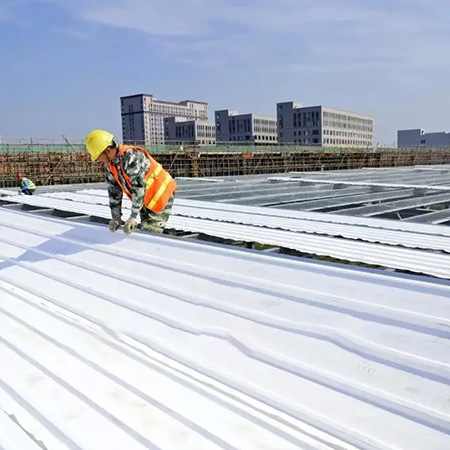 TPO/PVC鋼塑復合防水瓦以鋼板為基板,表面貼覆具有防水防腐功能的TPO/PVC卷材(熱塑性聚烯烴類防水卷材),是一款防水防腐屋面建筑材料。TPO/PVC鋼塑復合防水瓦主要特點就是在各類環境下不易生銹不易漏水,使用熱風焊接進行相連,覆蓋全部裸露的縫隙,在使用過程中可以達到蓄水不滲透的效果,防水效果好,同時還有較好的抗風揭性能和耐老化性