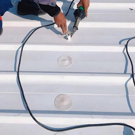 海美防水瓦以鋼板為基板,表面貼覆具有防水防腐功能的TPO/PVC卷材(熱塑性聚烯烴類防水卷材),是海美金屬推出的新一代防水防腐屋面建筑材料。海美防水瓦主要特點就是在各類環境下不易生銹不易漏水,使用熱風焊接進行相連,覆蓋全部裸露的縫隙,在使用過程中可以達到蓄水不滲透的效果,防水效果好,同時還有較好的抗風揭性能和耐老化性能,為鋼結構建筑屋面提供了長久的防護。